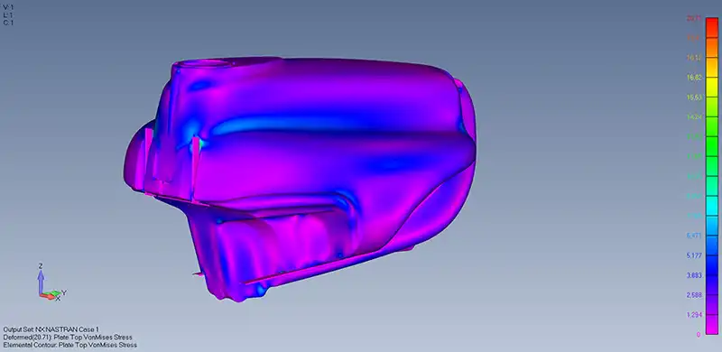 Durante le fasi iniziali della progettazione, offriamo un’analisi del comportamento statico del prodotto mediante software FEM (Finite Element Method). Questo ci consente di identificare e risolvere eventuali criticità strutturali già nelle prime fasi, ottimizzando il progetto prima di passare alla fase esecutiva.
